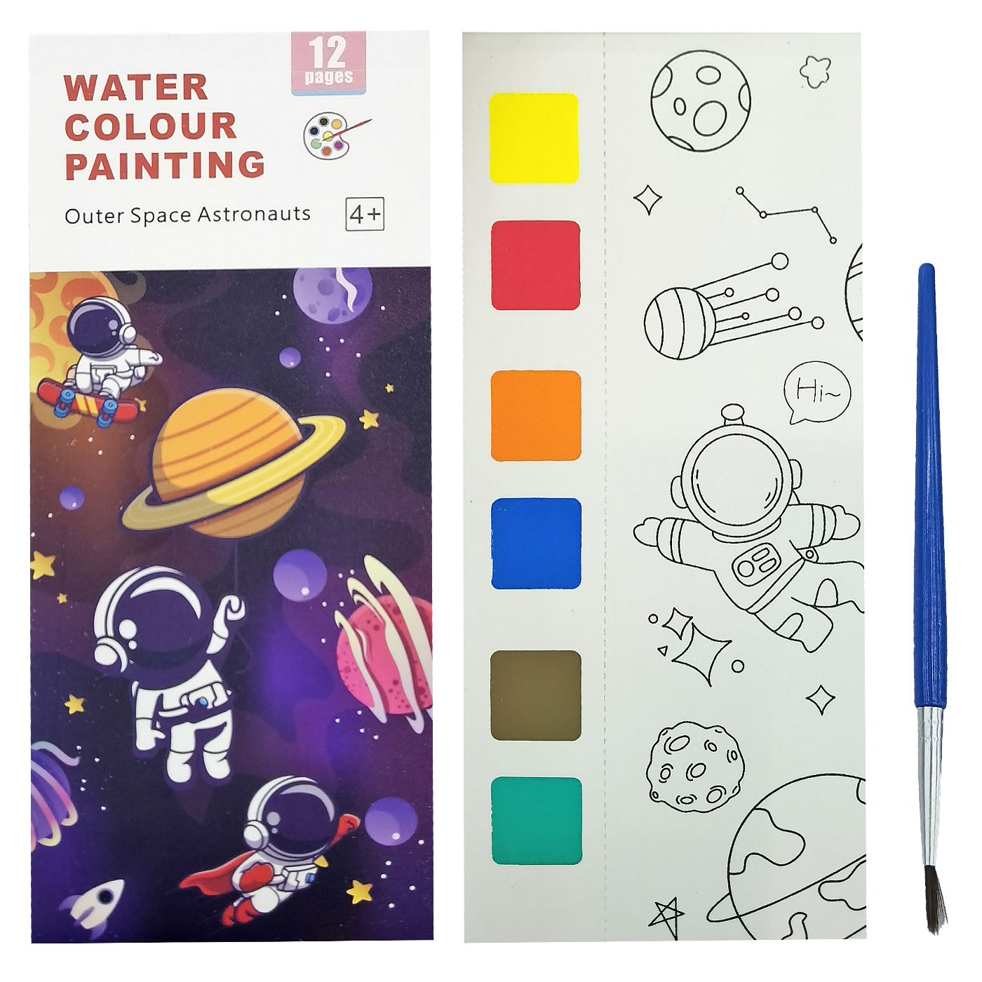 Στην κάθε σελίδα αυτού του υπέροχα εικονογραφημένου μπλοκ 12 φύλλων, με θέμα τον Διαστημάνθρωπο σε περιμένει μια απίθανη παλέτα με νερομπογιές, που θα σου χαρίσει ατέλειωτες ώρες δημιουργικής απασχόλησης και διασκέδασης! Περιλαμβάνει και το πινέλο. Κατάλληλο για ηλικίες +3 ετών.