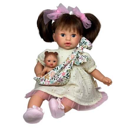 Η αγαπημένη μας Παιδική κούκλα Alex με Λευκό φόρεμα και Μωρό σε Μάρσιπο, φοράει τα πιο όμορφα ρούχα και ανυπομονεί να σε γνωρίσει! Χειροποίητα ρούχα, προσεγμένα και φτιαγμένα με έμφαση στη λεπτομέρεια θα σας εντυπωσιάσουν! Η κούκλα Alex έχει εμφάνιση που ξεχωρίζει και εξωτική ομορφιά που μαγνητίζει και πάει παντού με το μάρσιπο και αγκαλιά το μωρό της. Το σώμα της είναι μαλακό και έχει άκρα από βινύλιο και έχει ύψος 40εκ.