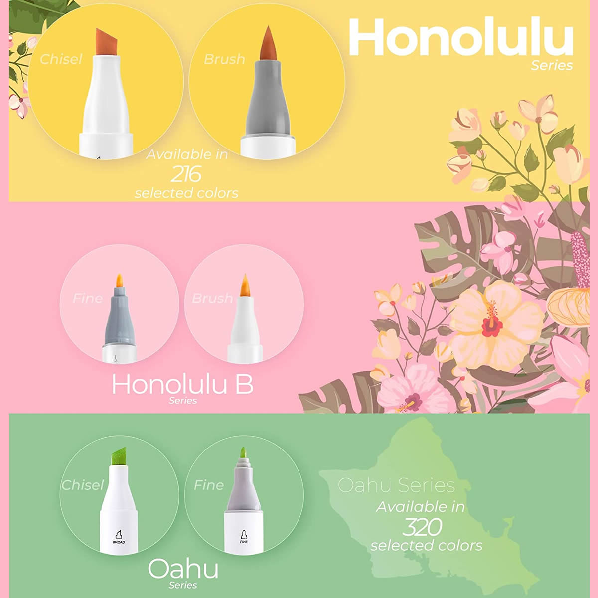 Το σετ διατίθεται σε υπέροχη θήκη και περιλαμβάνει 169 μαρκαδόρους (168 χρώματα και 1 άχρωμο Blender) με διπλή μύτη Brush & Chisel που έχουν ως βάση την αλκοόλη.