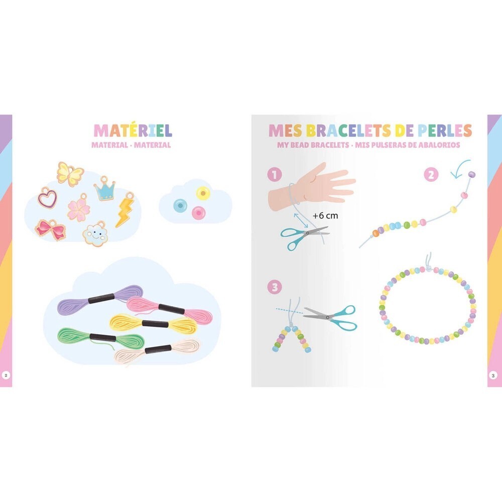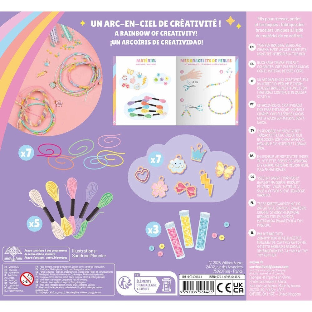 Ένα σετ με υλικά για να δημιουργήσεις 30 μοναδικά βραχιόλια, από την εταιρία Auzou, που μπορείς να φοράς και να συνδυάζεις όπως επιθυμείς: χάντρες, βραζιλιάνικα νήματα, ελαστικά νήματα και πολύχρωμα φυλακτά – υπάρχουν επιλογές για κάθε γούστο! Οι δημιουργίες, απλές και μοντέρνες, μπορούν να προσφέρουν ένα υπέροχο πολύχρωμο αποτέλεσμα στον καρπό! Περιλαμβάνεται φυλλάδιο με αναλυτικές οδηγίες βήμα-βήμα. Κατάλληλο για τα παιδιά ηλικίας +7 ετών.