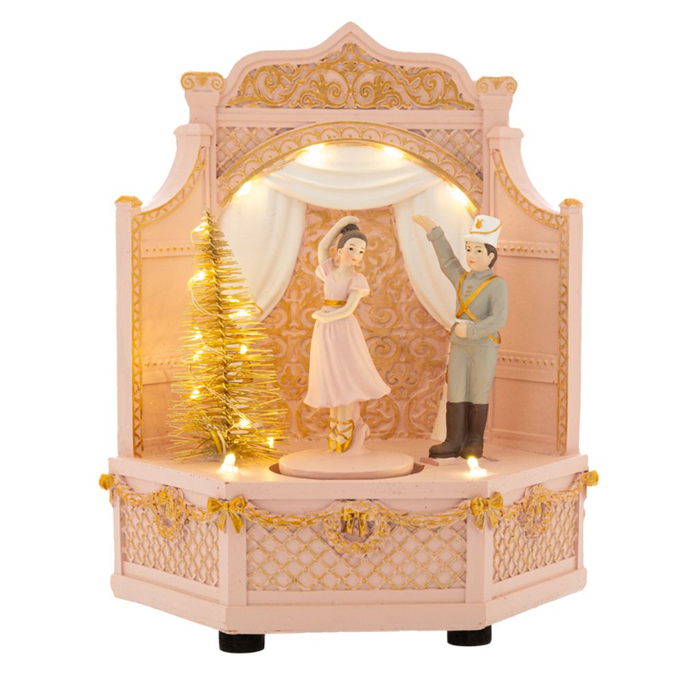 Υπέροχο Χριστουγεννιάτικο Ροζ Πολυρεζίν Σκηνικό με Χορευτές, ιδανικό για να διακοσμήσει όποιο σημείο του σπιτιού σας επιθυμείτε και να μεταδώσει το πνεύμα των Χριστουγέννων. Διαθέτει 3 λειτουργίες: φως (led), κίνηση και μουσική. Λειτουργεί με μπαταρίες (3 x AA), οι οποίες δεν συμπεριλαμβάνονται στην συσκευασία.