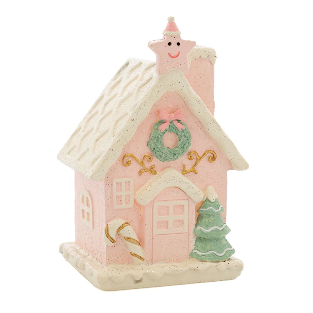 Ροζ Πολυρεζίν Χριστουγεννιάτικο Σπιτάκι 9.5*8*15 cm