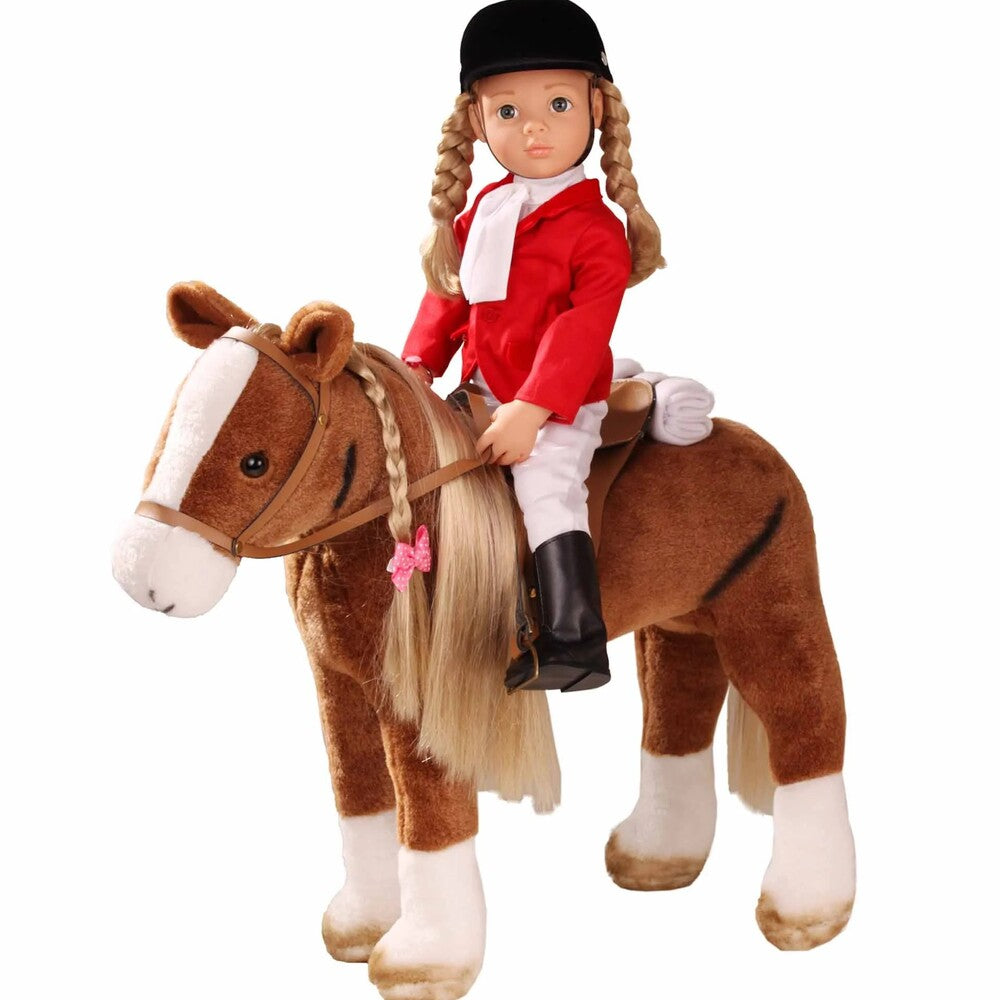 Horse riding is a wonderful sport. Groom and feed your pony, take care of it and style its mane. With this large pony, all of this is possible. Recommended for standing dolls up to 50 cm tall.