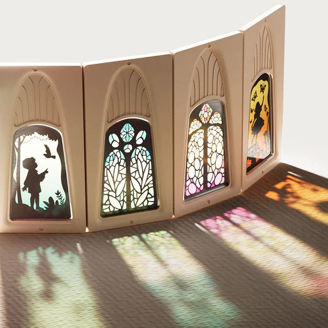 With transparent, colored stained-glass tiles that capture light and create captivating shadows!