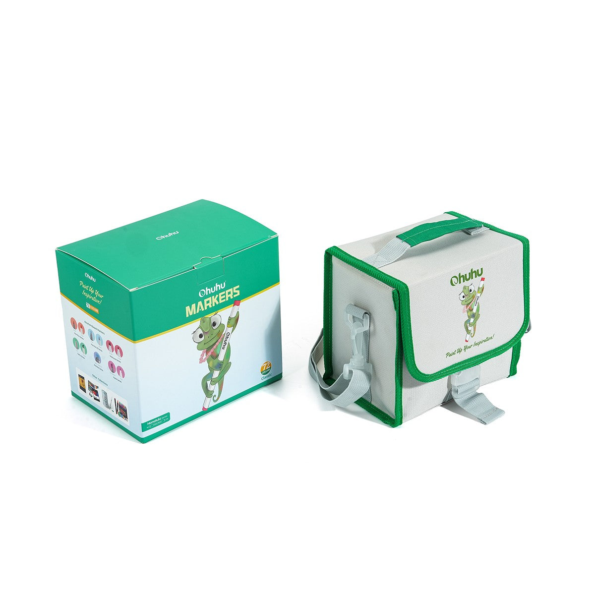 The Ohuhu set comes in a beautiful case and includes 73 markers (72 colors and 1 colorless BLENDER) with a dual tip. Brush & Chisel which are alcohol-based.