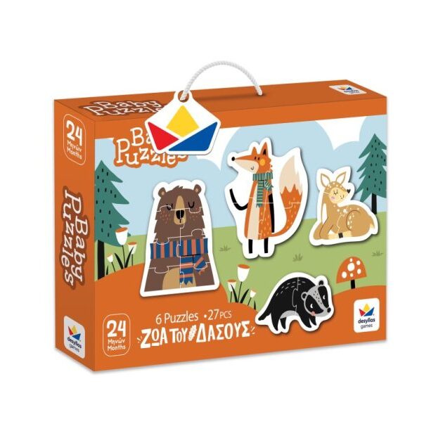 Wonderful Baby Puzzle with which you can create 6 different puzzles – with a Forest Animals theme, from the company Desyllas. The puzzles, from 2 to 7 pieces each, are designed for gradual progress and endless fun!