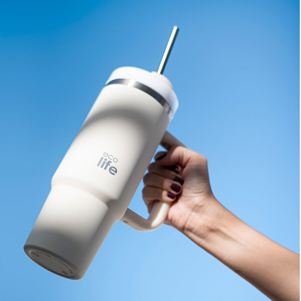 Aνοξείδωτο θερμός ροφημάτων - tumbler, υψηλής αισθητικής από την εταιρία Eco Life, σε cream χρώμα, με πώμα δύο υποδοχών που περιστρέφεται. Κατασκευασμένο από ατσάλι κορυφαίας 304 (stainlesssteel 18/8) ποιότητας, που προσφέρει εγγύηση και ασφάλεια, χωρίς τοξικές, ουσίες, χωρίς αλουμίνιο.