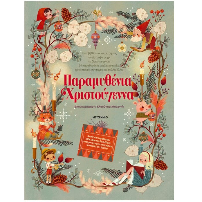 Άνοιξε κάθε μέρα ένα παραθυράκι και δες πώς προετοιμάζονται για τα Χριστούγεννα η Χιονάτη, ο Παπουτσωμένος Γάτος, ο Πίτερ Παν, ο Πινόκιο, η Κοκκινοσκουφίτσα, η Σταχτοπούτα, η Αλίκη στη Χώρα των Θαυμάτων και τα Τρία Γουρουνάκια. Ανακάλυψε ιστορίες, κατασκευές, συνταγές και τόσα άλλα.