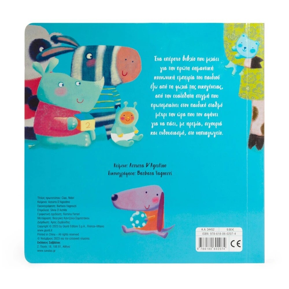 Ένα υπέροχο βιβλίο που μιλάει για την πρώτη σημαντική εμπειρία του παιδιού έξω από τη φωλιά της οικογένειας, από την ευαίσθητη στιγμή που πρωτομπαίνει στον παιδικό σταθμό μέχρι την ώρα που τον αφήνει για να πάει, με ηρεμία, σιγουριά και ενθουσιασμό, στο νηπιαγωγείο.